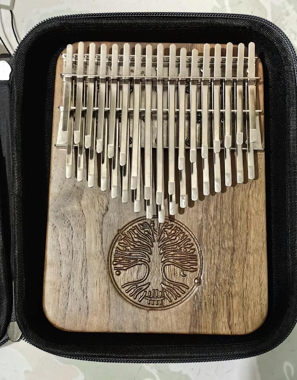 • "Tree of Life" Carving Design: The soundboard features an intricately carved "Tree of Life" pattern, symbolizing the eternal connection between life and nature. The unique carving design adds both artistic flair and emotional depth to this Kalimba.